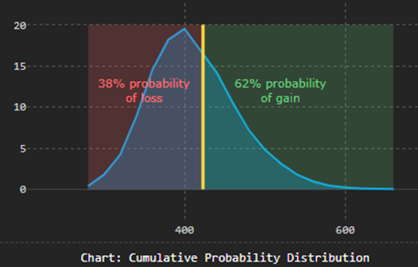 This aligns with the Monte Carlo result showing 20-25% probability of >20% gains.